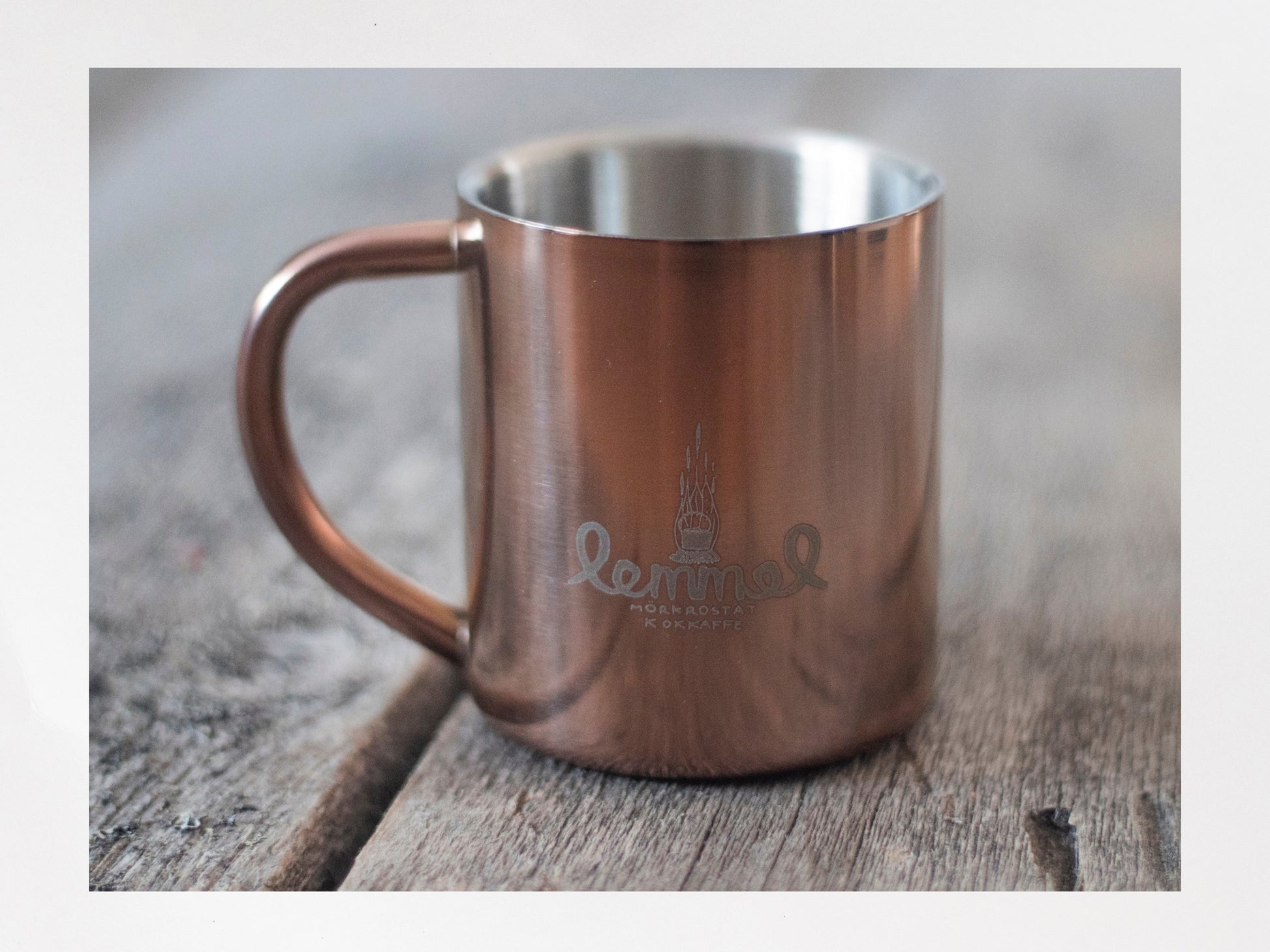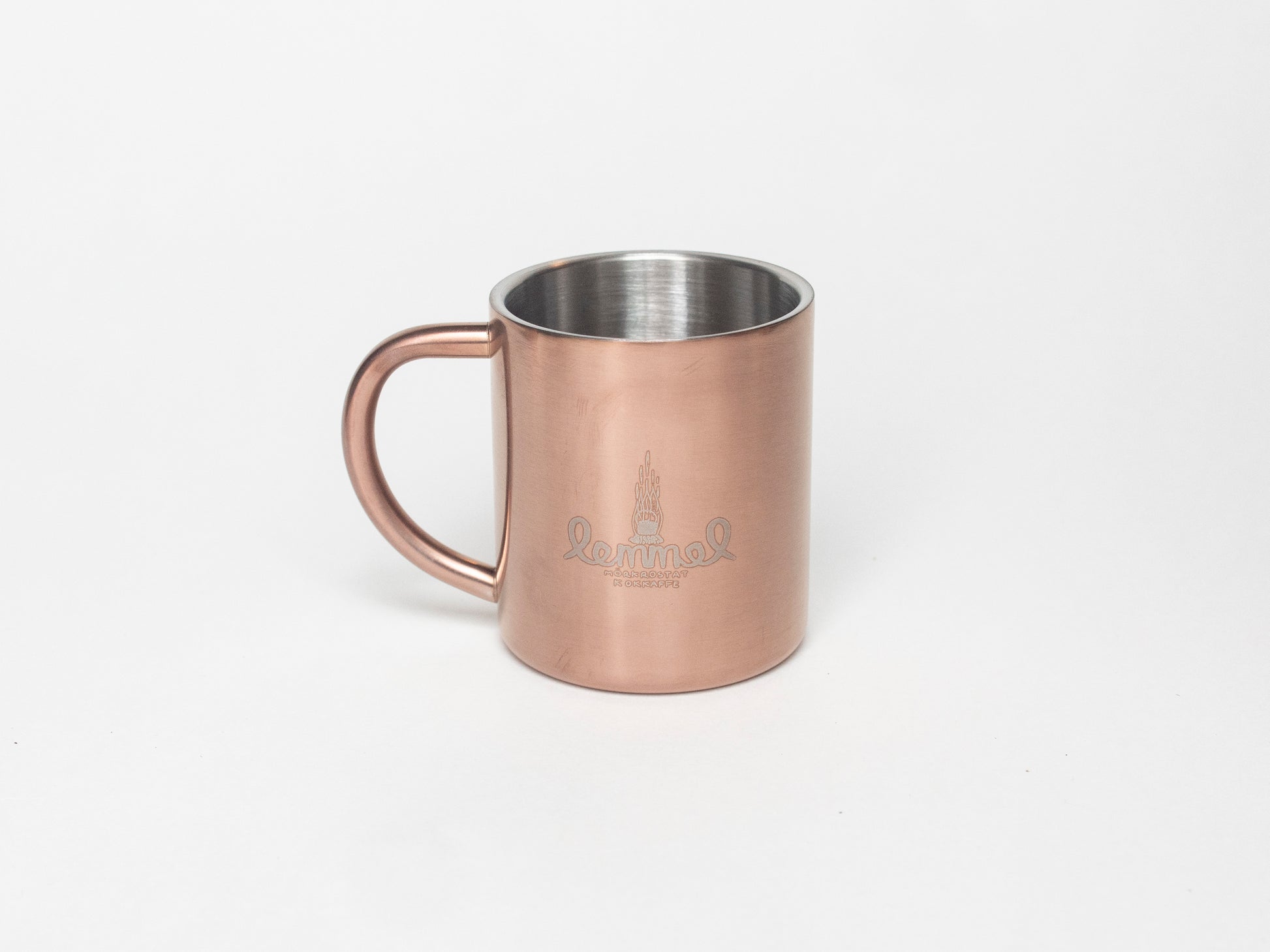 Denna med utsidan i polerat högkvalitativ kopparlegering, resten av muggen är i rostfritt stål. Håller drycken varm eller kall under samtliga årstider. Volym 220 ml. Kommer i en tygpåse som skyddas din daug mot vassa ting och hårda människor.
